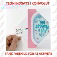 Trin 2 - Luk kortet, og læg det i kuverten. Træk (ikke rive eller flå) sikkerhedsfanen ud af kortet. Kortet er nu aktiveret og klar til at blive givet væk.